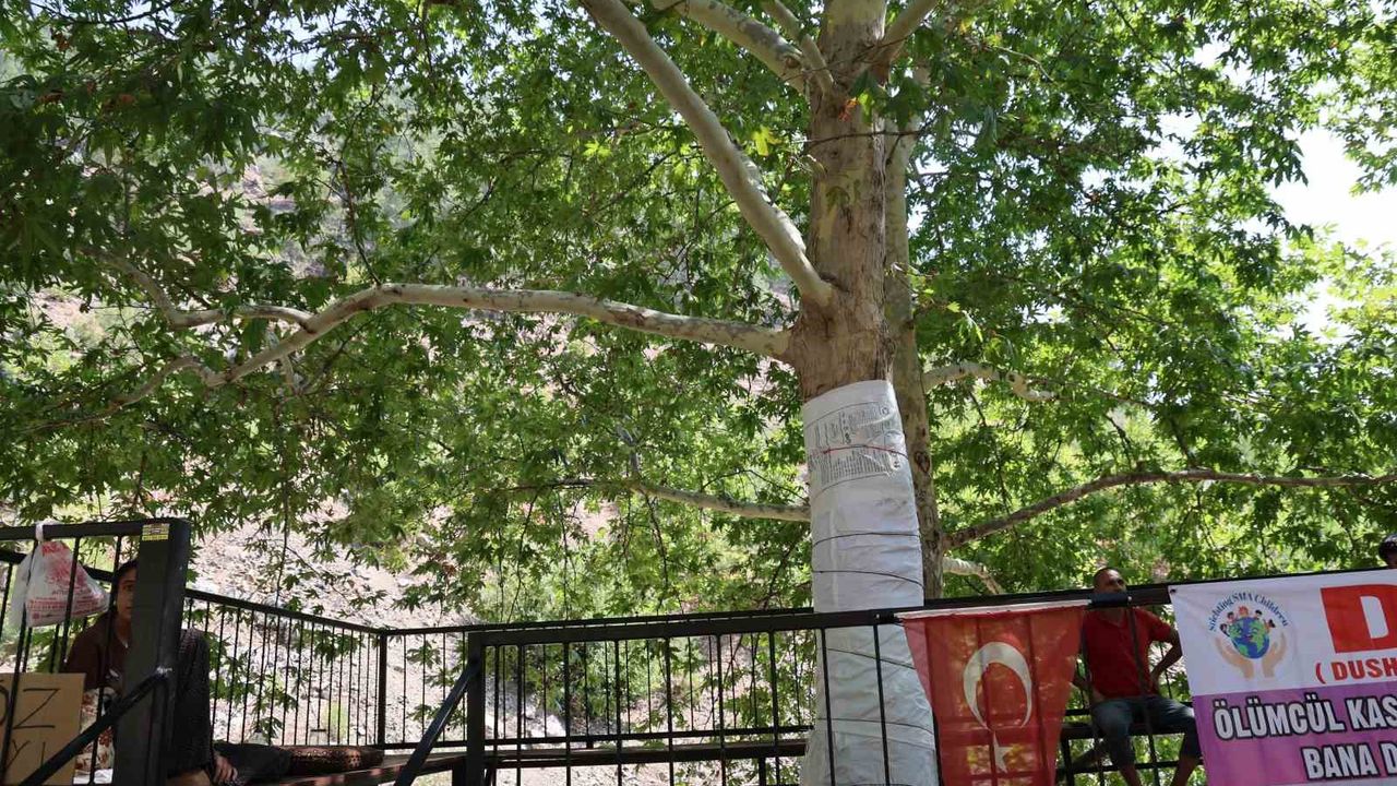 Tatlı satışı yapan Orhan Özdemir ise "Gölgesinde oturup serinliyorlar, sonra bıçakla isim kazıyorlar. Yaklaşık 45 yıllık bu ağacı korumak zorundayız. Korunmazsa gölgesinde oturamayız" diye konuştu.