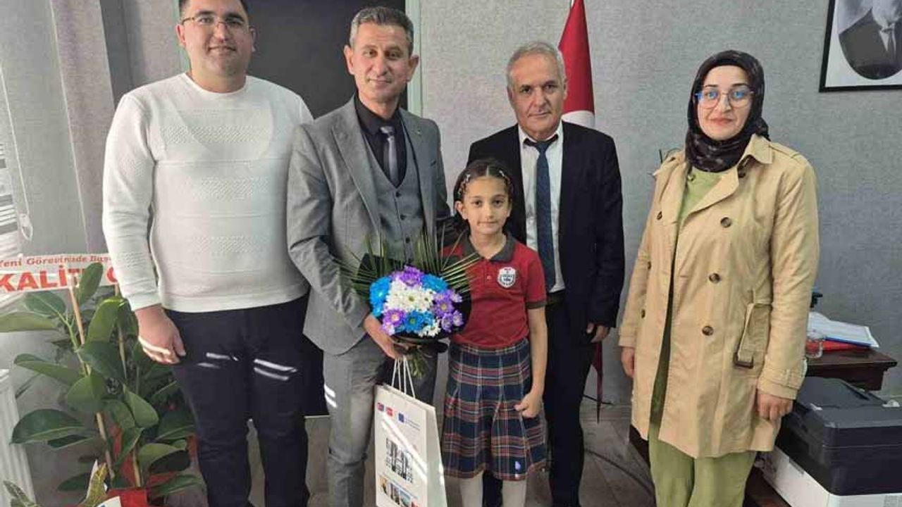 Başarılı öğrenci, ailesi ve okul müdürü Halis Şimşek ile birlikte İl Milli Eğitim Müdürlüğü’nü ziyaret etti. Ziyarette Müdür Altay, üstün performans sergileyerek birincilik elde eden Hüma Daşdemir’i tebrik ederek ödüllendirdi.
