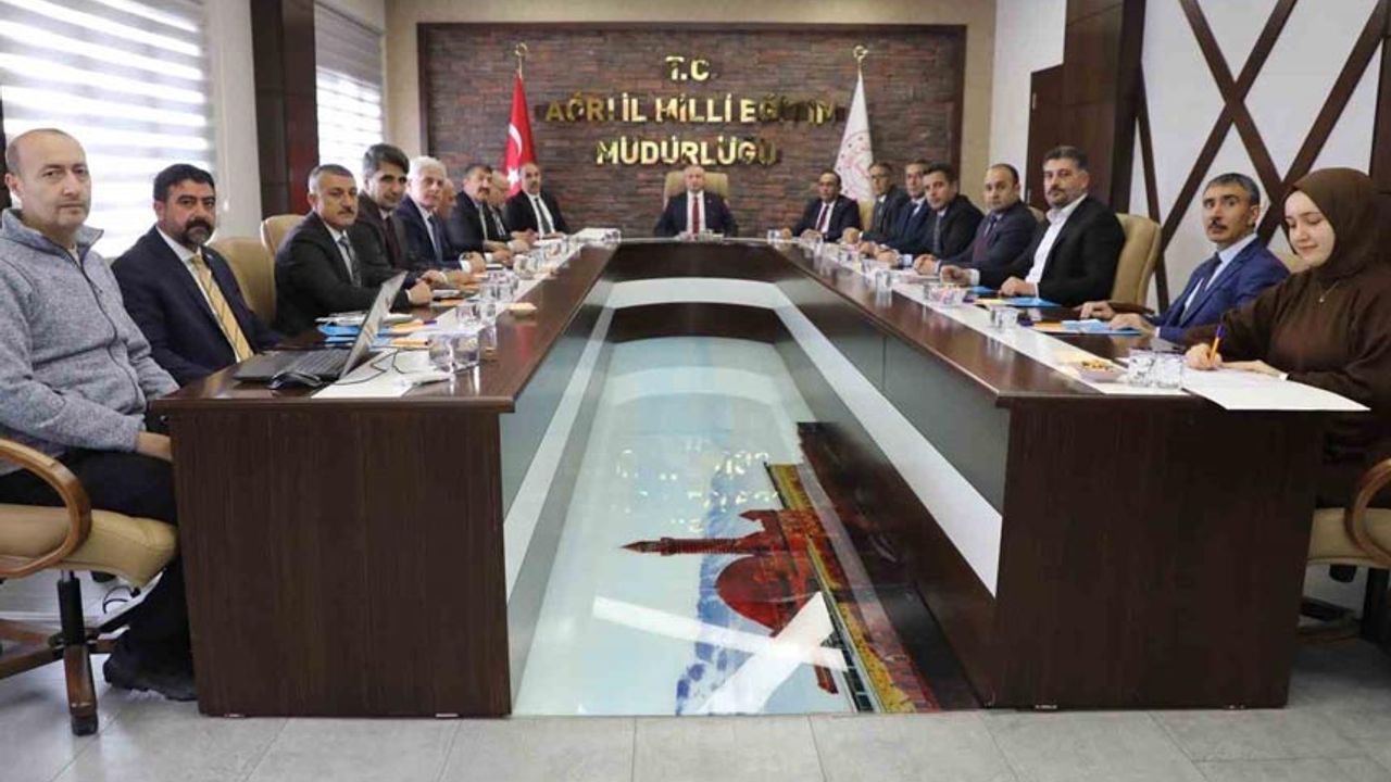 Ağrı İl Milli Eğitim Müdürlüğü toplantı salonunda gerçekleştirilen toplantıya İl Milli Eğitim Müdürü Hasan Kökrek’in yanı sıra Eğitim Müfettişleri Başkanı İbrahim Gökalp, İl Milli Eğitim Müdür Yardımcıları Edip Erdoğan ve Selahattin Bilgiç, ilçe milli eğitim müdürleri ile şube müdürleri katıldı.