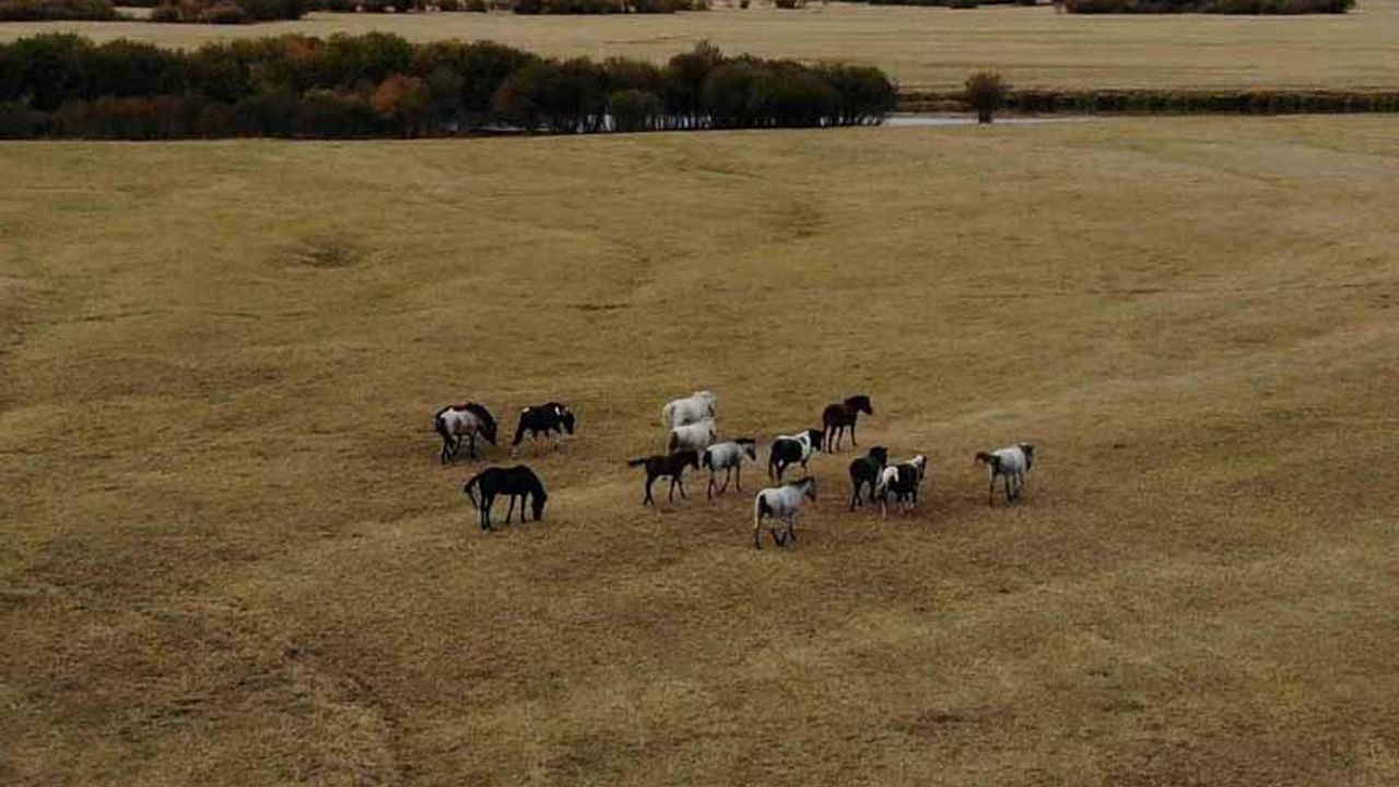 Son günlerde, bölgeyi görüntülemek için yapılan bir çalışma sırasında, yılkı atlarının doğal ortamlarındaki hareketleri dron kameraları tarafından kaydedildi. Görüntülerde, metrelerce meralarda özgürce dalaşan, Kura Nehri’nin etrafında özgürce karınlarını doyuran renkleriyle görenleri büyüleyen yılkı atları yer alıyor.