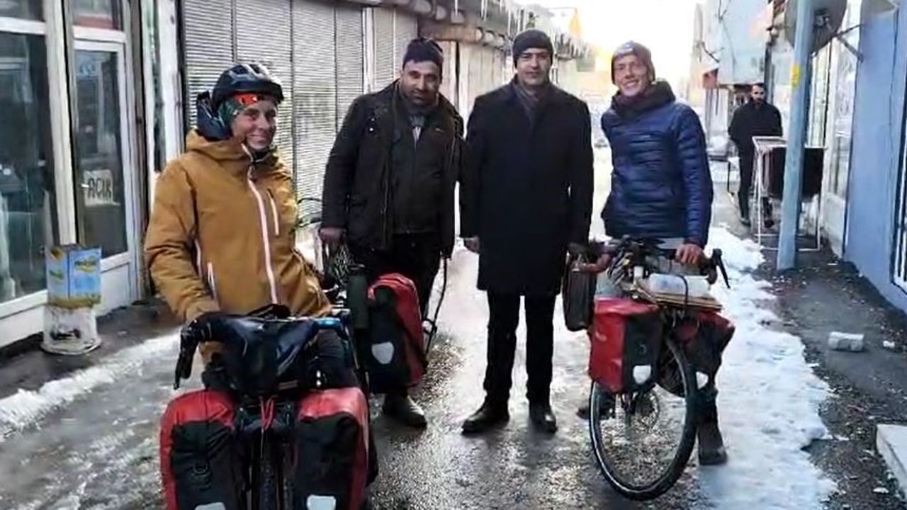 Quentin ve Zo, bisikletleriyle dünyayı keşfetme tutkularını gerçekleştirmek için çıktıkları yolda, Bulgaristan’ı geçerek Türkiye’ye ulaştılar. Edirne’den başlayıp Van’a kadar uzanan yaklaşık 3 bin kilometrelik bir parkuru tamamlayan çift, Türkiye’nin en soğuk ilçelerinden biri olan Çaldıran ilçesinde konakladıktan sonra Gürcistan’a geçmeyi planlıyorlar. "Pamir Otoyolu"nu aşarak Kazakistan’a ulaşarak yolculuklarını tamamlamayı hedefleyen Fransız çift, yolculuklarının hem fiziksel hem de mental olarak zorlayıcı olduğunu ancak her gün yeni bir macera yaşamanın ve farklı kültürlerle tanışmanın büyük bir keyif olduğunu söylüyor. Kazakistan’a ulaştıklarında bu büyük yolculuğun sonuna gelmiş olacaklarını dile getiren çift, dünyayı keşfetme tutkularının gelecekte yeni rotalara yelken açmalarını sağlayacağını belirtti.