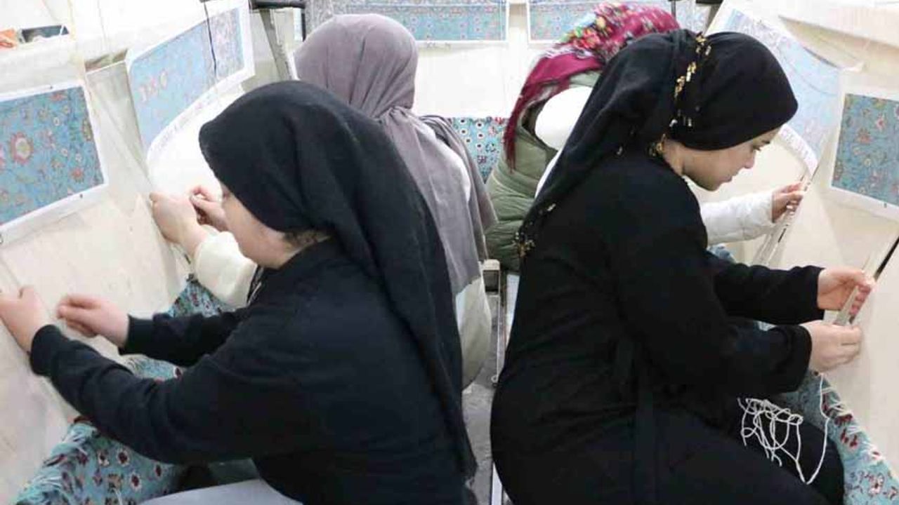 Usta öğretici Selbihan Taş, 30 öğrencisi olduğunu belirterek, "Sabah 08.00’de gelip, akşam 17.00’de çıkıyorlar. Burada ekonomik anlamda da ailelerine çok destek oluyorlar. Onlar için çok güzel bir iş imkanı. Okumayan öğrencilerin açıköğretime kayıtlarını yapıyoruz, eğitimlerini tamamlıyoruz. Onlar da usta öğretici olmaya hak kazanıyorlar. Meslek liselerini yazıyoruz, sanayiye gönderiyoruz. Bu şekilde devam ediyorlar. Çocuklarını da kendileriyle getiriyorlar. Burada çocuklarıyla zaman geçiriyorlar. Biz burada da gereken destekleri veriyoruz, gereken yardımları veriyoruz. Elimizden ne gelirse kaymakam beyin yardımıyla bu yolda devam ediyoruz. Burada halı dokumacılığı yapıyorlar. Kadınlar gelip burada meslek öğreniyorlar, halı dokuyorlar. Bu halılar burada dokunup, yurt dışına satışa sunuluyor" dedi.