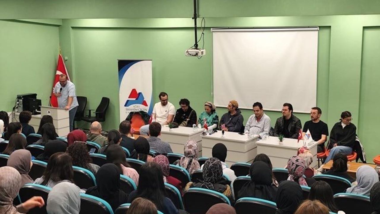 Erzurum Devlet Tiyatrosu sanatçılarının öğrencilerle gerçekleştirdikleri ‘Doğuda Tiyatro Yapmak’ konulu söyleşisine yoğun katılım gösterildi. Doğubayazıt Ahmed-i Hani Meslek Yüksekokulu Konferans Salonunda düzenlenen etkinliğin moderatörlüğünü Öğretim Görevlisi Mustafa Bilirdönmez üstlenirken, konuşmacı olarak Erzurum Devlet Tiyatrosu sanatçıları yer aldı.