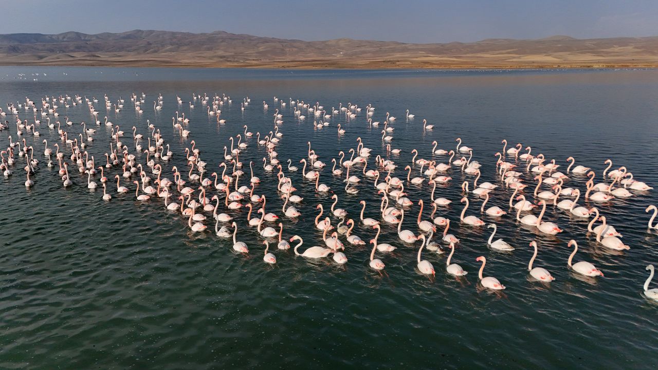 Van'ın doğusunda yer alan, eşsiz doğal güzelliği ve biyolojik çeşitliliğiyle dikkat çeken Erçek Gölü, her yıl olduğu gibi bu yıl da flamingoların göç yolculuğunda uğrak noktası oldu. Pembe tüyleri, uzun zarif boyunları ve estetik duruşlarıyla doğa tutkunlarının gözdesi olan flamingolar, hava sıcaklığının mevsim normallerinin üzerinde seyrettiği bölgede konaklama sürelerini uzattı.
