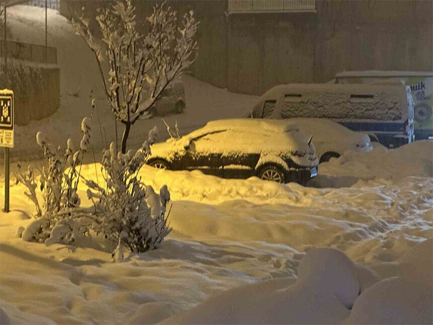 Yüksekova ilçesinde akşam saatlerinde bastıran kar yağışı nedeniyle araçlar kara gömülürken, ilçede kar kalınlığı 20 santimetreyi geçti.