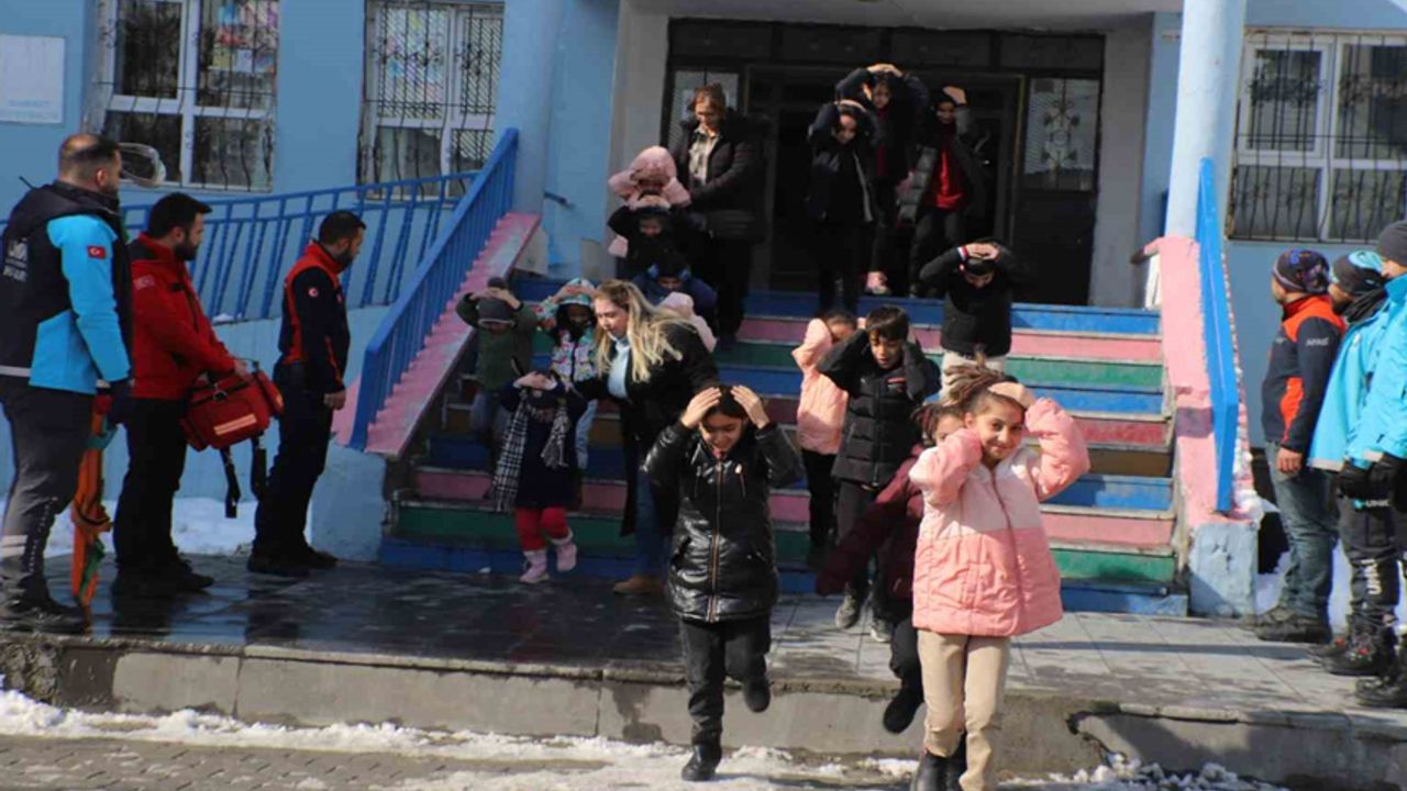 24 sınıflı ve 580 öğrencinin eğitim öğretim gördüğü Cumhuriyet İlk ve Ortaokulunda sınıflarda muhtemel bir depreme karşı yapılabilecek önlemler hakkında uygulamalı olarak bilgi verildi. Verilen deprem alarmıyla idareciler, öğretmenler ve öğrenciler, "çök, kapan, tutun" hareketi ile oluşturdukları güvenli noktada kendilerini korumaya aldı.