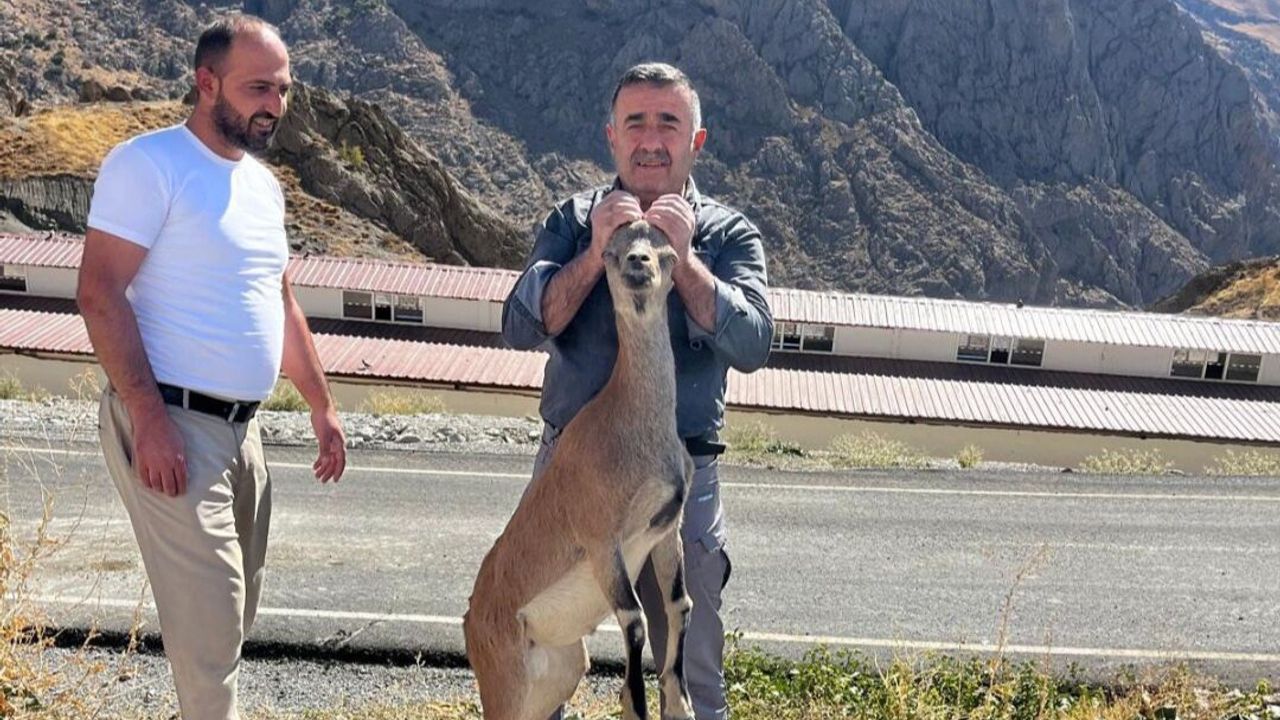 Hakkari-Van karayolu üzerindeki Serısolan mevkisinde yorgun halde bulunan dağ keçisi, belediye ekipleri tarafından kurtarılarak tedavi altına alındı.