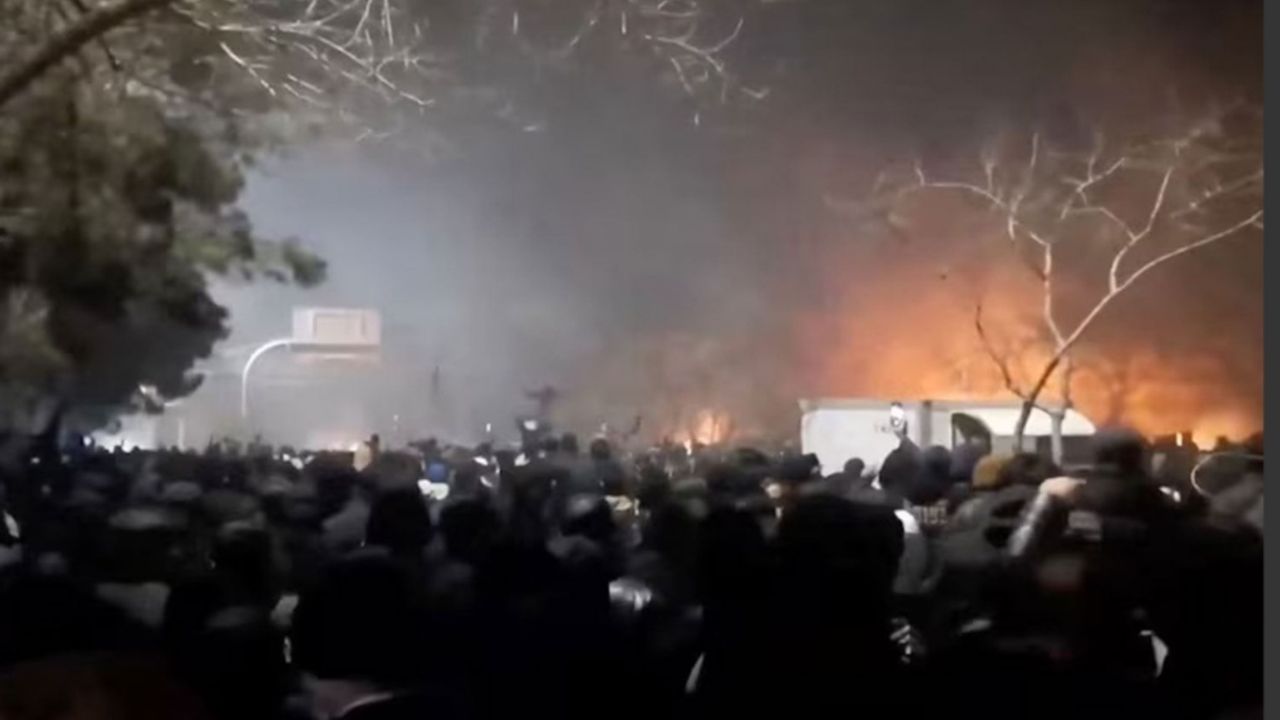 Cumartesi günü paylaşılan başka bir videoda, kuzeydoğudaki Meşhed şehrinden alınan görüntülerde; sokaktaki yangınlardan gece gökyüzüne dumanların yükseldiği, maskeli protestocular ve enkazla dolu bir yol görülüyor. Patlama sesleri duyulabiliyor. Ancak Reuters konumları doğruladı.
