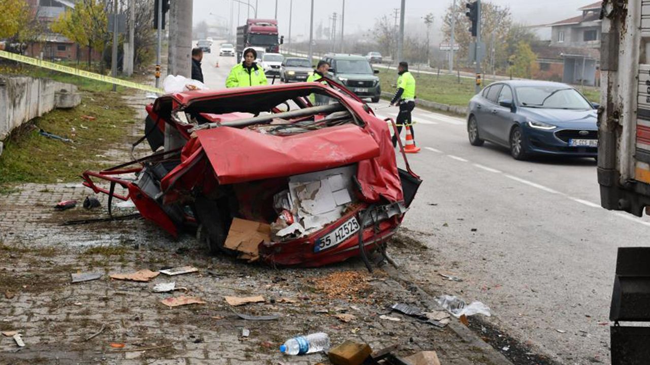 Edinilen bilgiye göre, Kenan Eral (30) yönetimindeki 19 UC 108 plakalı kamyon, Vezirköprü Devlet Hastanesi kavşağında kırmızı ışıkta duran Makbule Çağla Gümüş’ün (30) kullandığı 55 HZ 525 plakalı Tofaş otomobile arkadan çarptı. Çarpmanın şiddetiyle otomobil hurdaya döndü. Kazada iki araç sürücüsü ile yolcular Melike Gürkanlı Zeybek (30) ve Binnur Gürkanlı (53) yaralandı. Yaralılar olay yerine sevk edilen sağlık ekiplerince Vezirköprü Devlet Hastanesi’ne kaldırıldı.