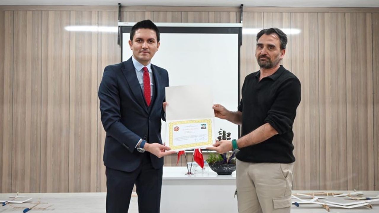 Ziyaretin sonunda Kaymakam Evren Çakır, kursa sunduğu katkılardan dolayı THK Model Uçak Eğitmeni Aydın Aydeniz’e teşekkür belgesi takdim etti.