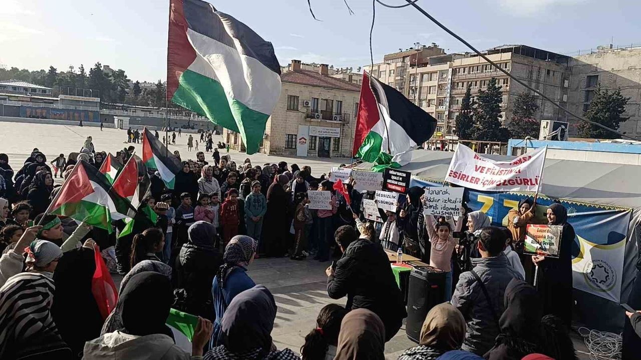 Topçu (Rabia) Meydanı’nda toplanan yüzlerce kadın, ellerindeki Filistin ve Türk bayrakları ile Gazze halkına destekte bulundu. Grup, Gazze halkı için dua etti, basın açıklaması ile İsrail’in idam yasasına tepki gösterdi.