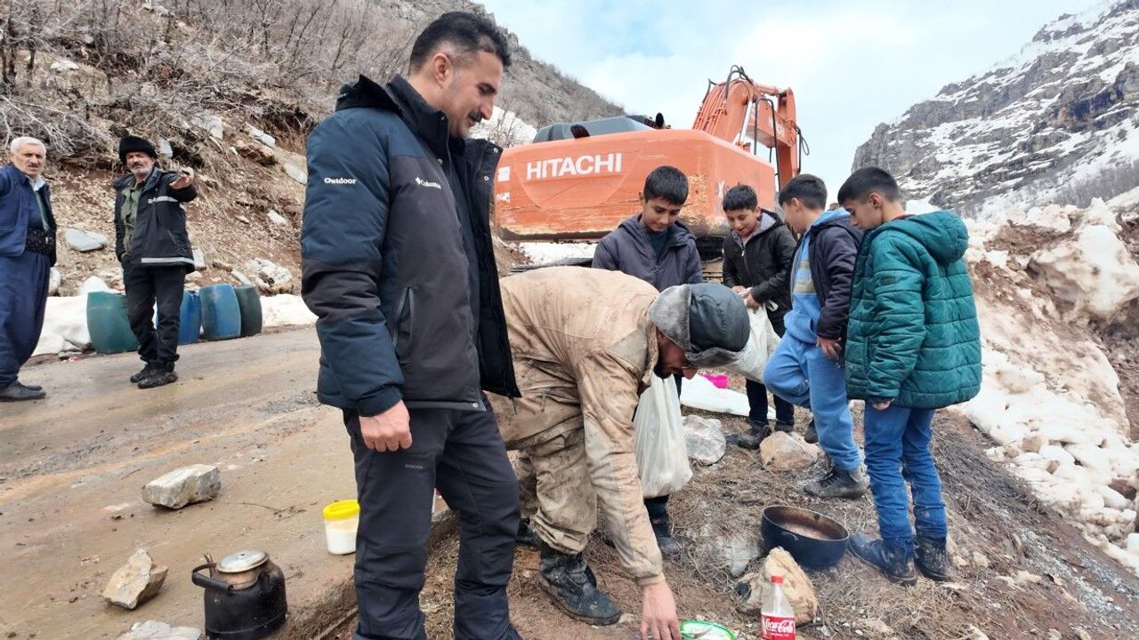Şırnak’ın Beytüşşebap ilçesine bağlı Beşağaç köyünde yaşayan 4 çocuk, günlerdir şiddetli yağışlar sonucu düşen çığ sonrası kapanan yollarda çalışan ekipleri yalnız bırakmıyor. İlçeye 35 kilometre uzaklıktaki köyün yakınlarında 5 gün önce düşen çığ yolun tamamını kapatmıştı. 5 gündür gece gündüz çalışan Beytüşşebap Kaymakamlığına bağlı İlçe Özel İdare ekiplerini yalnız bırakmayan çocuklar, günlerdir sıcak yemek ve çayı 3 kilometre yol kat ederek çığlı bölgeye taşıyor.