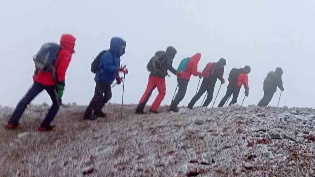 Ağrı’nın Doğubayazıt ilçesinde bulunan 5 bin 137 rakımlı Ağrı Dağı’nın yüksek kesimlerinde ve zirvesinde eylül ayına rağmen kar yağışı, fırtına ve yoğun sis etkisini sürdürüyor. Birçok dinde kutsal kabul edilen, terörden arındırıldıktan sonra yeniden tırmanışa açılan ve yılın her döneminde dağcı gruplarını ağırlayan Ağrı Dağı’na zirve tırmanışı gerçekleştirmek isteyen bir grup dağcı, yerel rehber Cuma Saltik öncülüğünde kar, tipi ve şiddetli rüzgâra rağmen tırmanış yaptı.