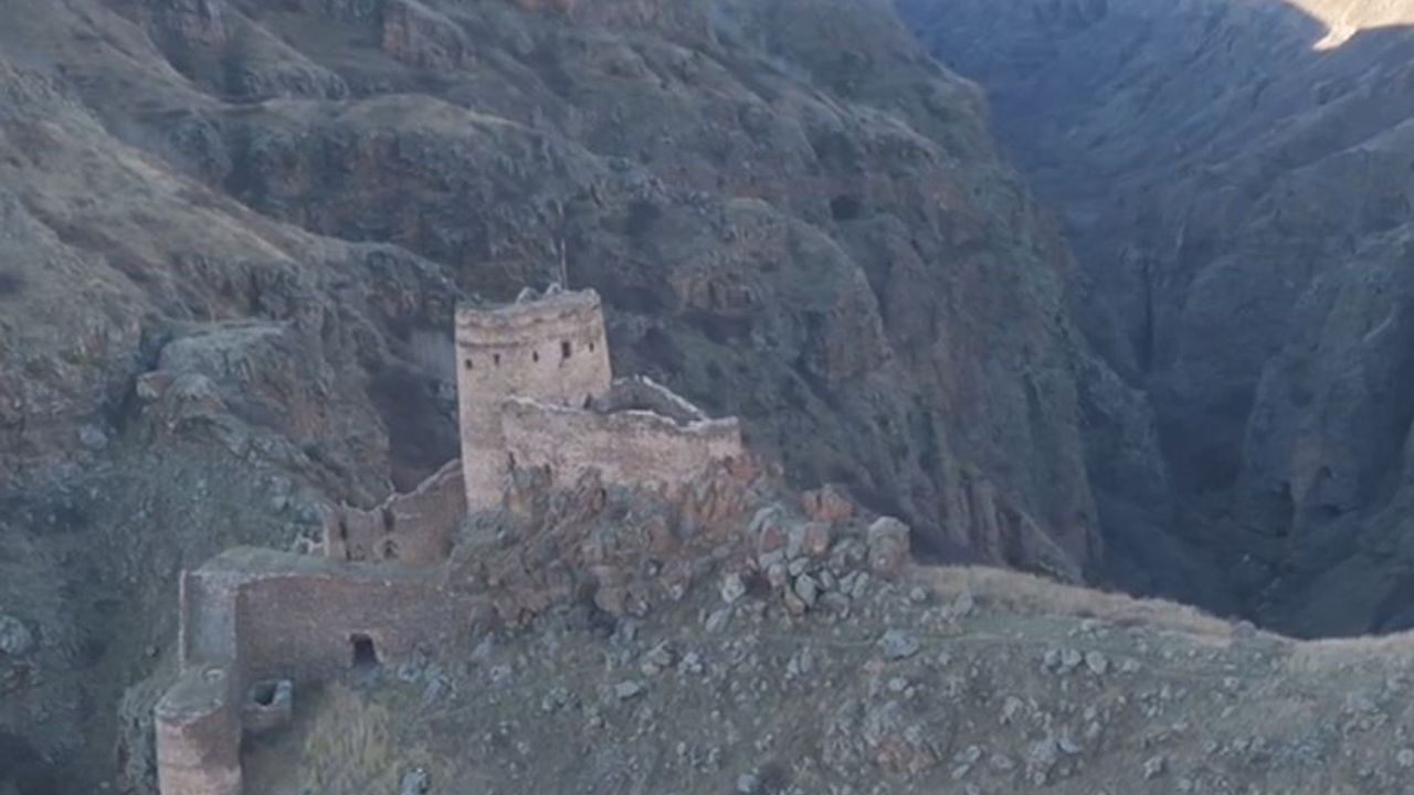 Ardahan’da bulunan ve yüksek kayalıkların zirvesine inşa edilen Şeytan Kalesi, şehrin en etkileyici doğal ve tarihi yapılarından biri. İlçeye 15 kilometre uzaklıktaki Yıldırımtepe köyü yakınında bulunan, Urartular döneminde yapıldığı tahmin edilen Şeytan Kalesi, Karaçay Kanyonu’na hakim tepedeki kayalıkların üzerinde yer almakta. Eşsiz doğası ve manzarasıyla göz dolduran ve son günlerde yabancı turistlerin ilgi gösterdiği kale, şu sıralar çevresindeki doğanın sararmaya başlayıp sonbahar renklerine bürünmeye başlamasıyla ayrı bir güzellik sunuyor. Yerli ve yabancı turistler, sonbahar mevsiminin kendini hissettirmeye başladığı bugünlerde bölgeye gelerek hem doğa gezintisi yapıyor hem de tarihi kalenin güzelliğini fotoğraflıyor. Ziyaretçilerine seyrine doyumsuz manzaralar sunan kanyonun zirvesindeki kale, dron ile görüntülendi.