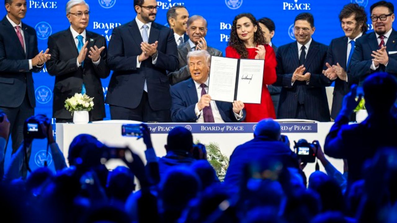 Gazze Şeridi'ndeki ateşkes için oluşturulan fakat ABD Başkanı Trump'ın ifadelerine göre Birleşmiş Milletler (BM) ile birlikte çalışarak küresel ölçekte geniş bir rol üstlenecek olan Barış Kurulu'nun kuruluş sözleşmesi imza töreni İsviçre Alpleri'ndeki Davos kasabasında gerçekleştirildi. ABD Başkanı Trump, başkanlığını üstlendiği Barış Kurulu'nun kuruluş sözleşmesine 19 katılımcı ülkenin temsilcileriyle birlikte imza attı. İmza töreni için masaya ilk davet edilen liderler, Donald Trump ile birlikte Bahreyn ve Fas liderleri oldu. İlk imzaların ardından "Barış Kurulu, artık resmen uluslararası bir örgüttür" ifadelerini kullanan Beyaz Saray Sözcüsü Karoline Leavitt, Barış Kurulu'nun kurucu üyeleri olarak diğer ülkelerin temsilcilerini de sırayla sözleşmeyi imzalamaya davet etti.