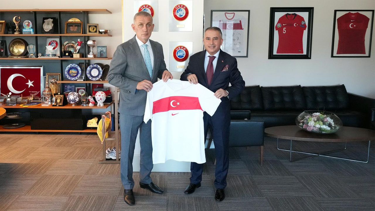 Ziyaretin sonunda TFF Başkanı Hacıosmanoğlu, Yıldırım’a üzerinde isminin yazılı olduğu A Millî Takım forması hediye etti.