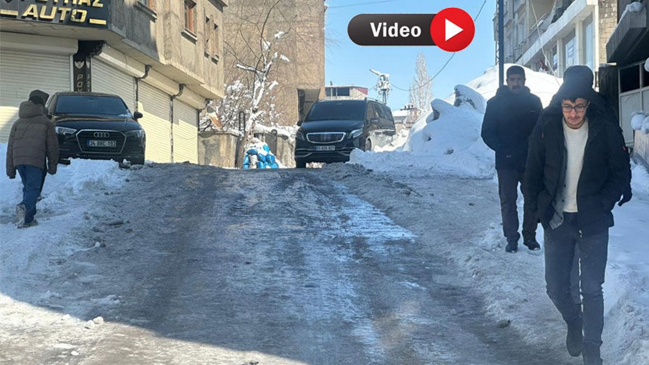 Yüksekova’nın Eski Kışla Mahallesi 404. Sokak’ta sokakta oluşan buz tabakası nedeniyle araçların geçişi neredeyse imkânsız hâle gelirken, vatandaşlar da güvenli olmadığı için yol kenarlarından yürümek zorunda kalıyor.