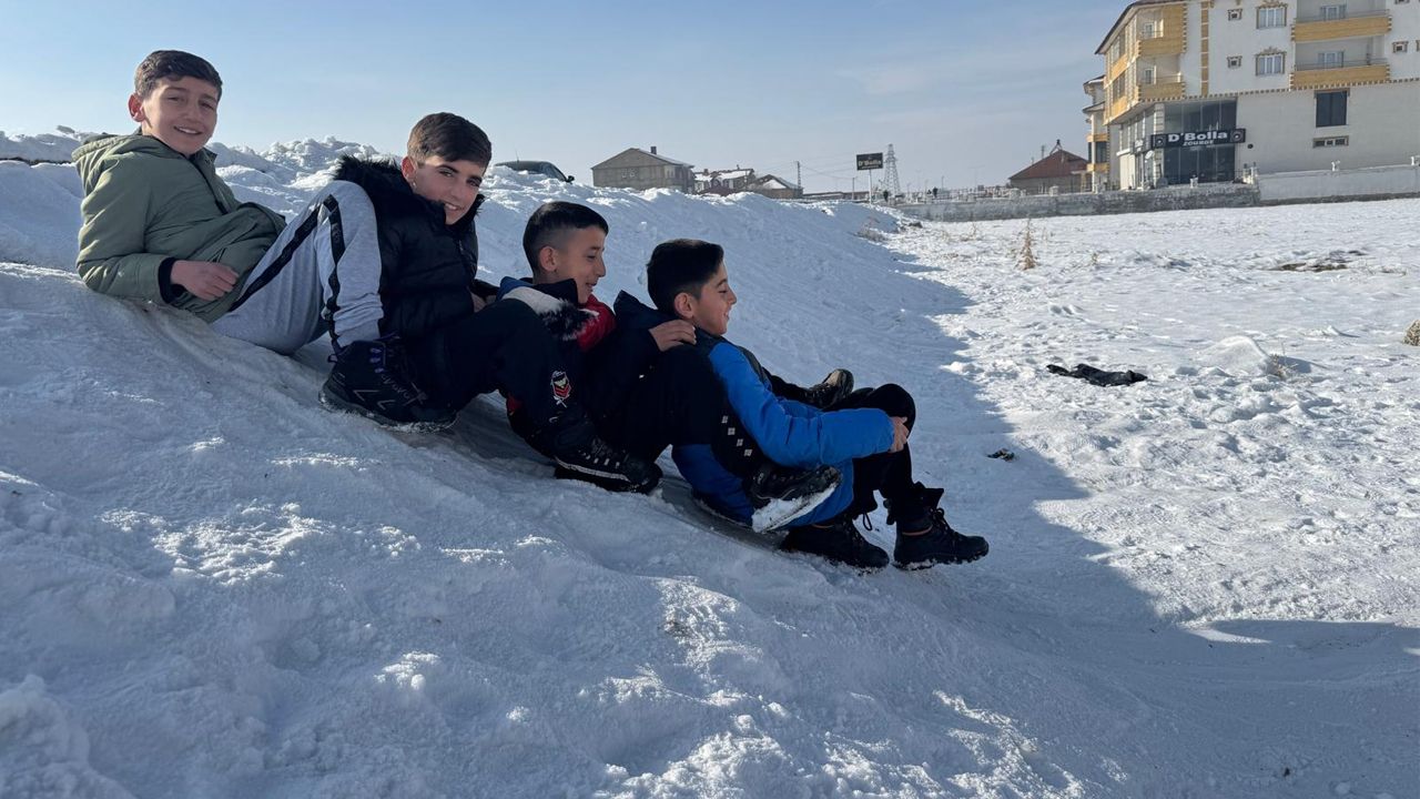 İlçede gece saatlerinde hava sıcaklıklarının sıfırın altına düşmesiyle birlikte kar örtüsü yer yer etkisini sürdürürken, çocuklar soğuk havayı fırsata çevirdi. Ellerine aldıkları poşetler, bidon parçaları ve çeşitli plastik malzemelerle mahalle aralarındaki yokuşlarda kayan çocuklar, kışın tadını doyasıya çıkardı.