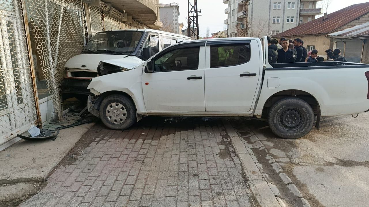 Kazada kamyonet ve minibüste maddi hasar oluşurken, çarpmanın etkisiyle bir iş yerinde de zarar meydana geldi.