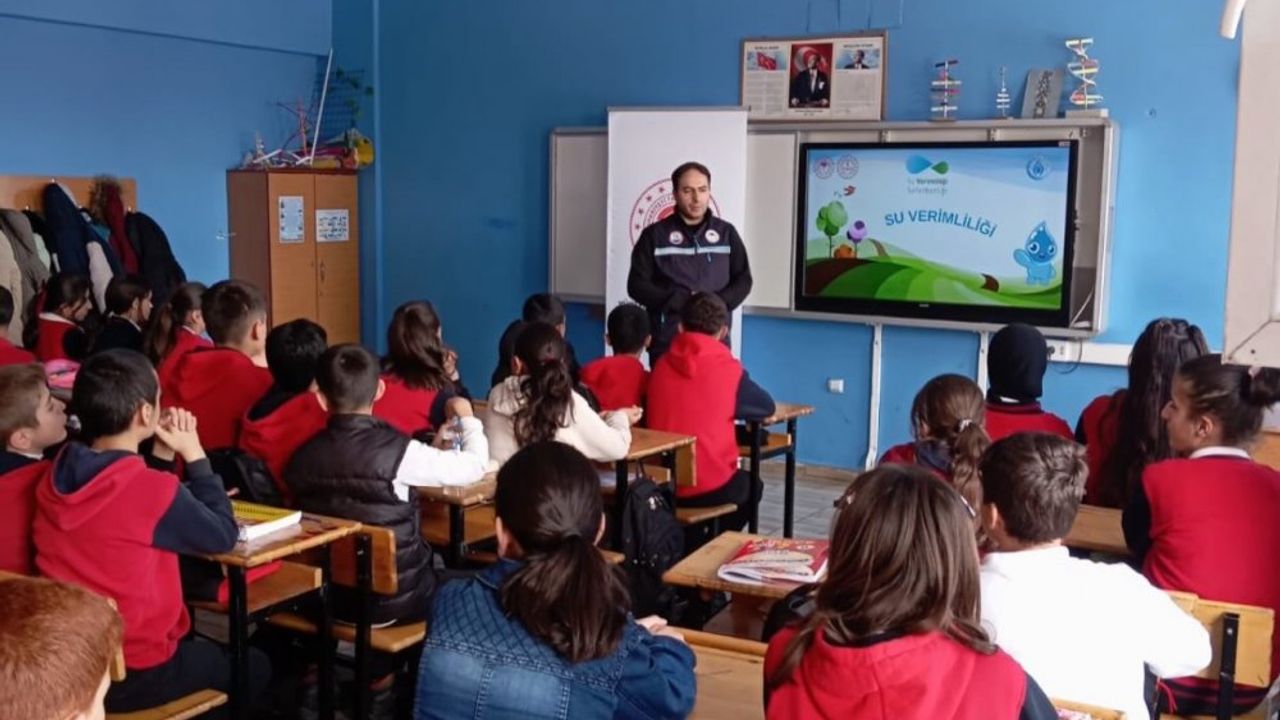 Eğitim programı kapsamında, suyun her damlasının korunması gerektiği vurgulanırken, öğrencilerin interaktif katılımıyla merak edilen sorular yanıtlandı.