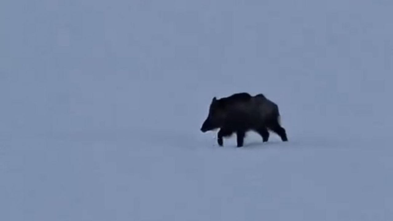 Bölgede ağır kış şartlarının etkili olduğunu belirten Gündüz, “Oldukça çetin bir kış geçiriyoruz. Yaban hayvanları hayatta kalabilmek için ister istemez yerleşim yerlerine yakın alanlara iniyor. Doski Vadisi yönüne ilerlerken bir yaban domuzunun dağdan inerek Karlı mevkisindeki ovaya doğru gittiğini gördük. Bir süre yiyecek aradıktan sonra yeniden dağlık alana yönelerek gözden kayboldu” dedi.