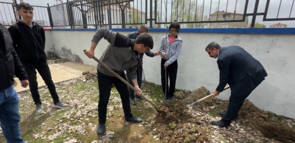 Yüksekova Ziraat Odası'nın desteğiyle Atatürk Anadolu Lisesi'nin okul bahçesine birçok kayısı fidanı dikildi.